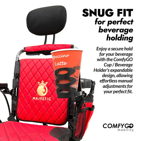 Upgrade your ride with the ComfyGO Cup & Beverage Holder, designed for electric wheelchairs and mobility scooters. Whether you choose the sleek Standard Black or enhanced Premium and Glow versions, this holder adds comfort and convenience to every journey.