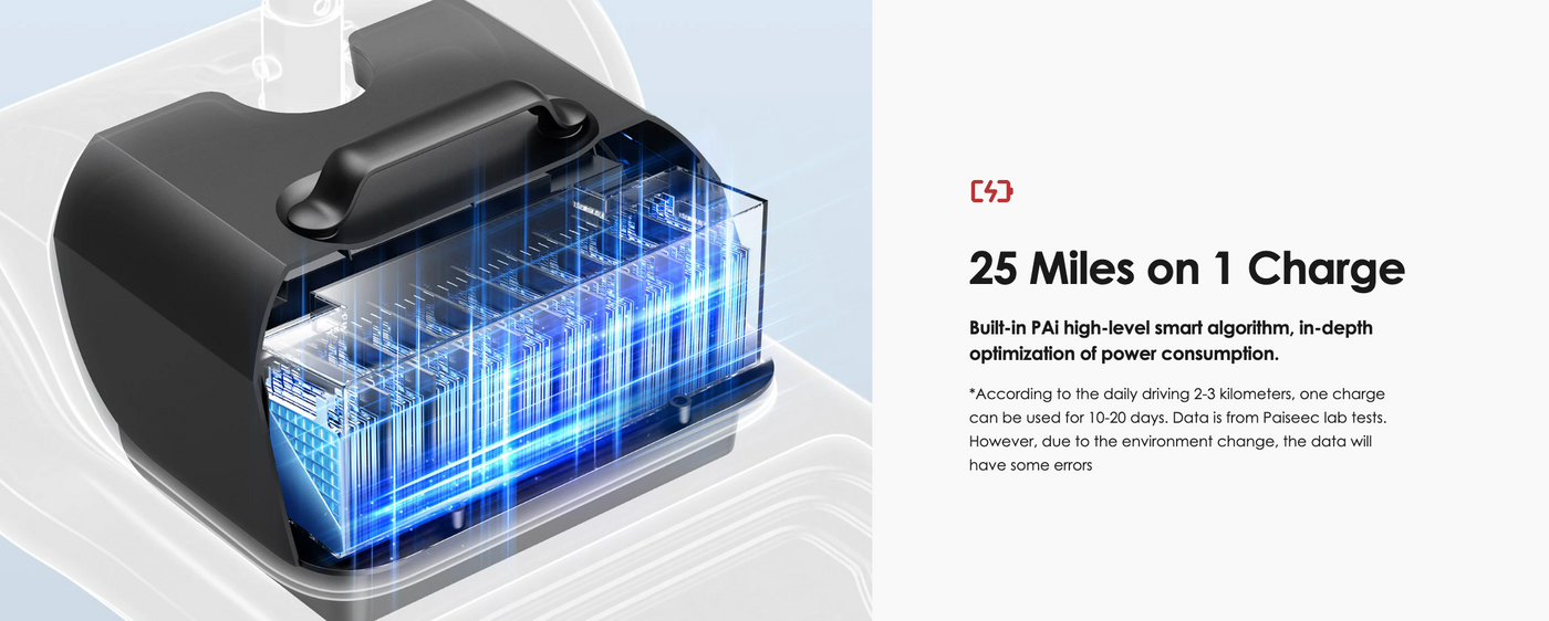 Built with comfort and security in mind, the S1 features a “PAi” Smart Safety System, which automatically slows down when turning or descending slopes to prevent tipping. An incline alarm provides an extra layer of safety, while the rotatable seat and spacious legroom offer enhanced comfort during long trips.