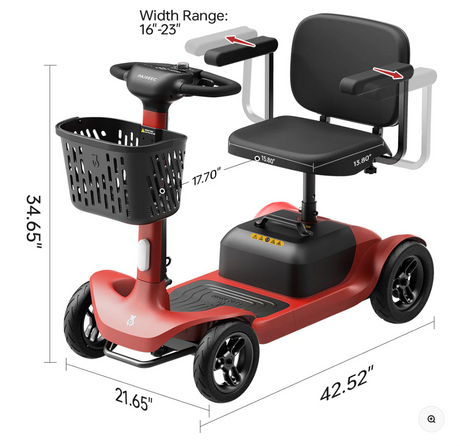 Paiseec S1 4-Wheel Mobility Scooter – 25 Mile Range, 6 MPH, Smart Safety System