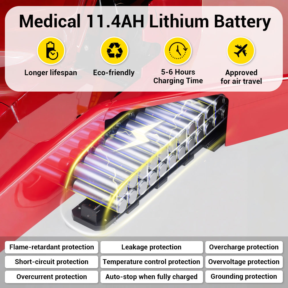 Easwe L10 – Luxury Electric Wheelchair with Adjustable Seat Height - Pearl Red / One 11.4AH Battery – 14 mi Range / 3D Winged Backrest with Headrest is backordered and will ship as soon as it is back in stock.
